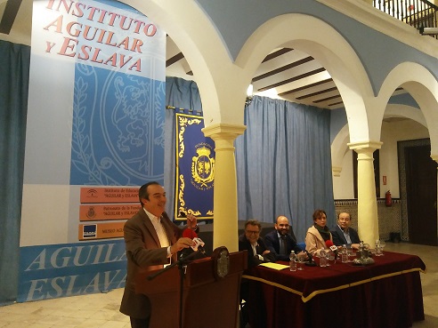 El acto se abría con la intervención del presidente de la Fundación Aguilar y Eslava, Salvador Guzmán quien agradecía la colaboración del Patronato Alcalá-Zamora de Priego en estas actividades, así como la presencia de la Alcaldesa de Priego, María Luisa Ceballos y del Teniente de Alcalde del Ayuntamiento de Cabra, Ángel Moreno. Por otra parte, destacó el trabajo infatigable de la institución prieguense en la recuperación del legado político, literario e histórico del que fuera antiguo alumno del Instituto de Cabra y llegó a la más alta representación del Estado