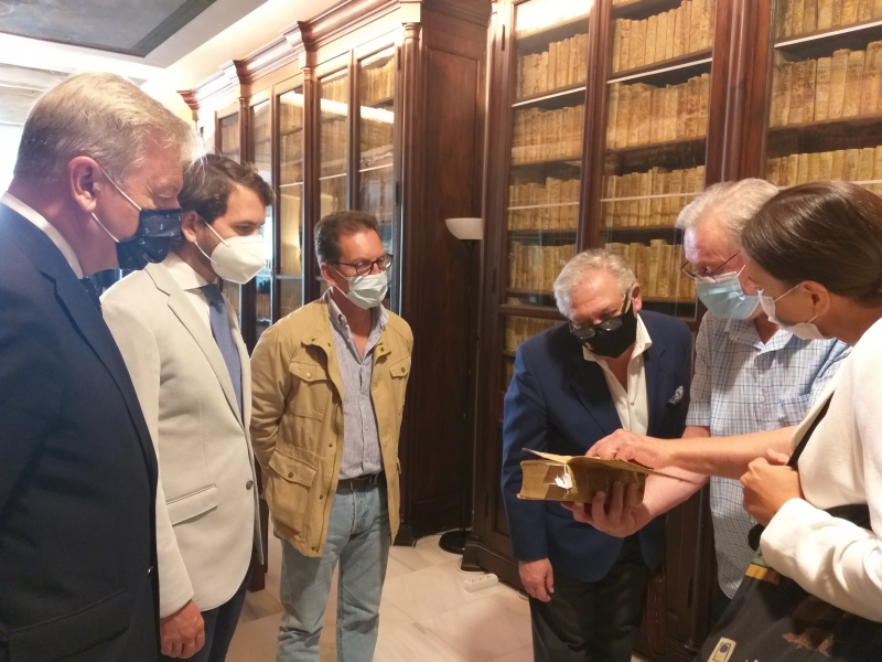 En el Archivo y Biblioteca históricos, fueron atendidos por Antonio Suárez quien junto a Mercedes Lama realizan la altruista labor de coordinación de los trabajos que se llevan a cabo. Antonio Suárez les mostró algunos de los libros más significativos de la Biblioteca Histórica, así como documentos del Archivo histórico en el que se vienen realizando tareas de catalogación, clasificación, digitalización y conservación de sus fondos. Sandra Santisteban, Marta Castillo y Susana Polo forman parte del equipo de trabajo, gracias a los convenios con Fundecor, Diputación Provincial, Mancomunidad del Guadiato y Ayuntamiento de Cabra, con los programas UCO-PRAEMS de la Universidad de Córdoba, así como al programa EPES de la Junta de Andalucía. Junto a ellos está también Manuel Gómez Camacho que realiza de manera altruista una intensa colaboración con el equipo que coordina y dirige Antonio Suárez Cabello.