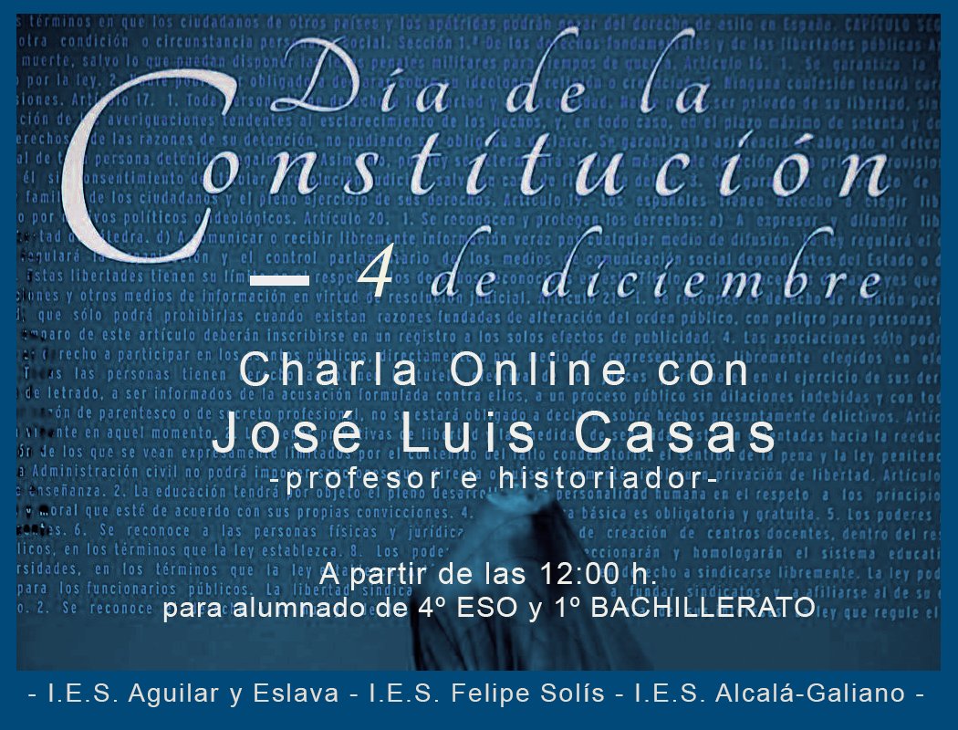 actualidad 03.12.20 Charla Online para el Día de la Constitución El próximo viernes, 4 de diciembre celebraremos el Día de la Constitución con una CHARLA ONLINE con el profesor e historiador, José Luis Casas Sánchez.