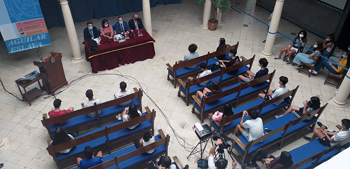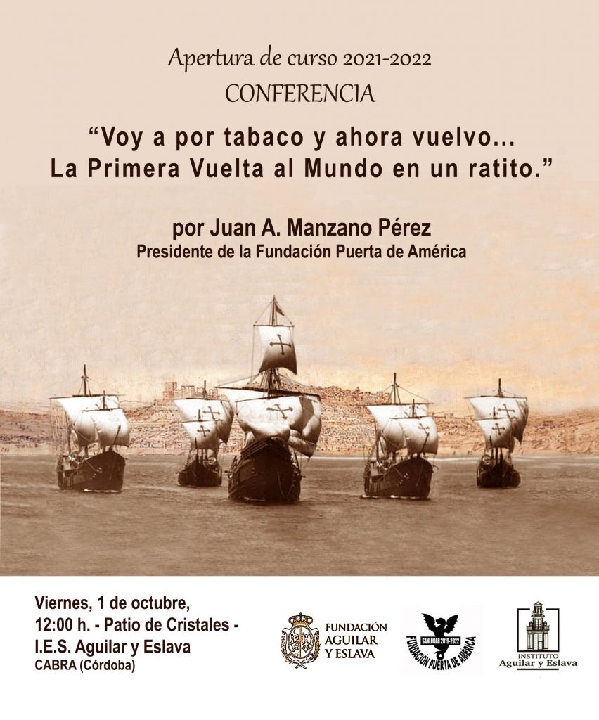 actualidad 04.10.21 Solemne apertura del curso académico 2021-2022 El curso 2021-2022 del I.E.S. Aguilar y Eslava, ha sido oficialmente inaugurado hoy a cargo del Presidente de la Fundación "Puerta de América" de Sanlúcar de Barrameda, Juan A. Manzano Pérez, quien ha ofrecido la conferencia "Voy a por tabaco y ahora vuelvo... La Primera Vuelta al Mundo en un ratito".