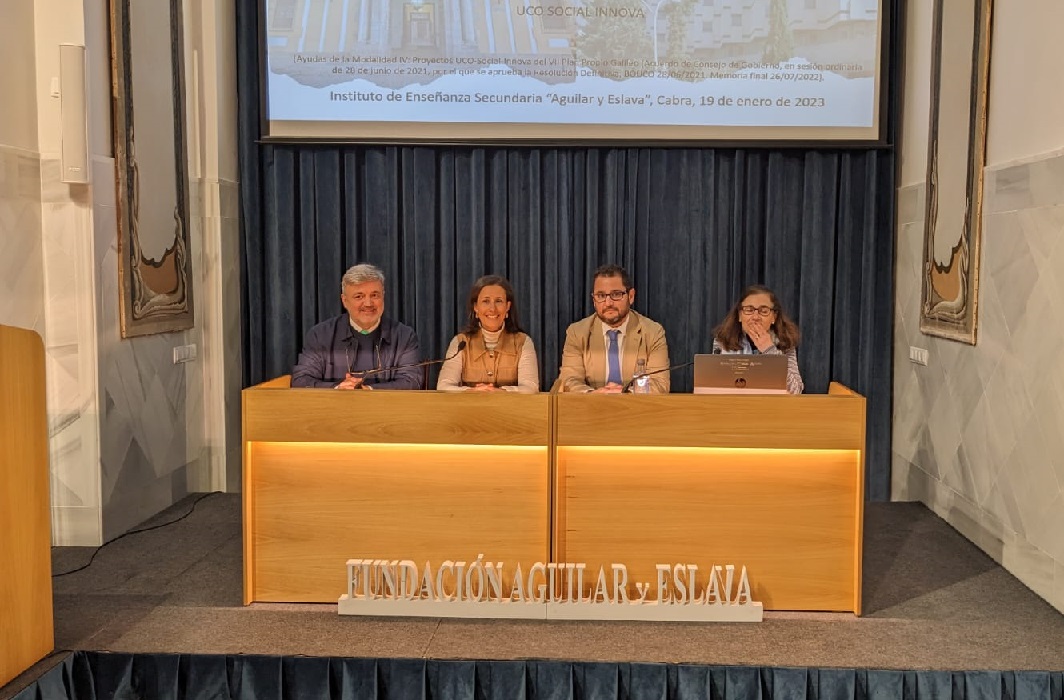 A continuación, la dra. Gómez Navarro presentó los resultados de la primera fase del proyecto, que ha recibido un reconocimiento en la reciente gala de los Premios Galileo de la UCO y que contó con el mecenazgo de la Fundación Aguilar y Eslava como una de las entidades sociales colaboradoras en el mismo.