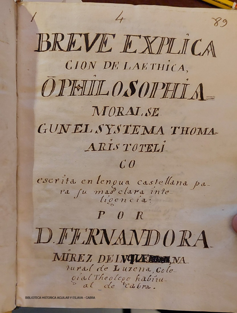 actualidad 04.01.24 La colección de Libros Manuscritos de la Biblioteca histórica Aguilar y Eslava en los repositorios de la UCO y de Biblioteca Digital de Andalucía Uno de los trabajos que se han llevado a cabo en 2023 en nuestro Centro de Estudios Vargas y Alcalde, ha sido la catalogación, clasificación y digitalización del fondo de «Libros manuscritos» que conserva nuestra Biblioteca histórica Aguilar y Eslava.