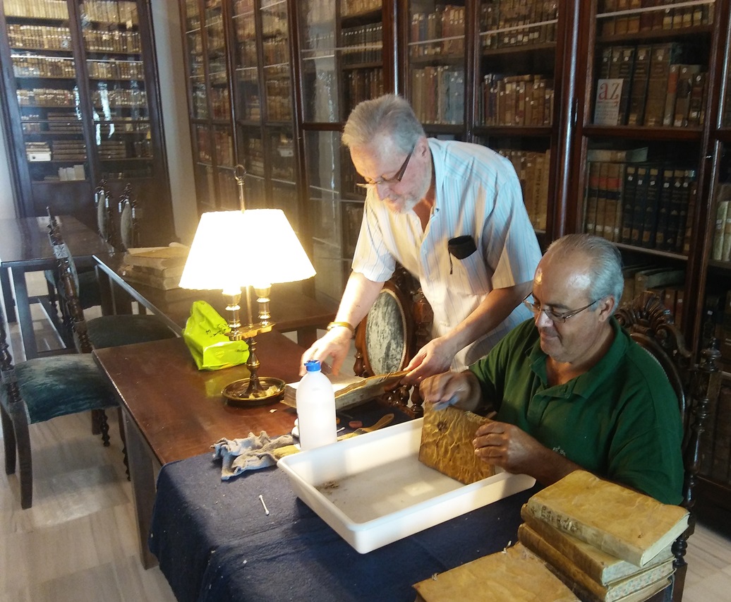 El tema de los libros, de los antiguos de ese «fondo libresco» de la fundación, como a él le gustaba decir, le ha llevado una dedicación durante muchos días de manera constante y continuada. Tras su jubilación como funcionario del Ayuntamiento de Cabra, amplió su dedicación cotidiana a la cultura, de la que se ha beneficiado durante más de una década la Fundación Aguilar y Eslava.
