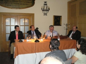 El acto con la presencia del Presidente del Real Cículo de la Amistad de Córdoba, del Vicehermano Mayor de la Cofradía Universitaria, Alberto Villar Movellán y del Presidente del CES, Jorge M, Rodríguez Almenar.